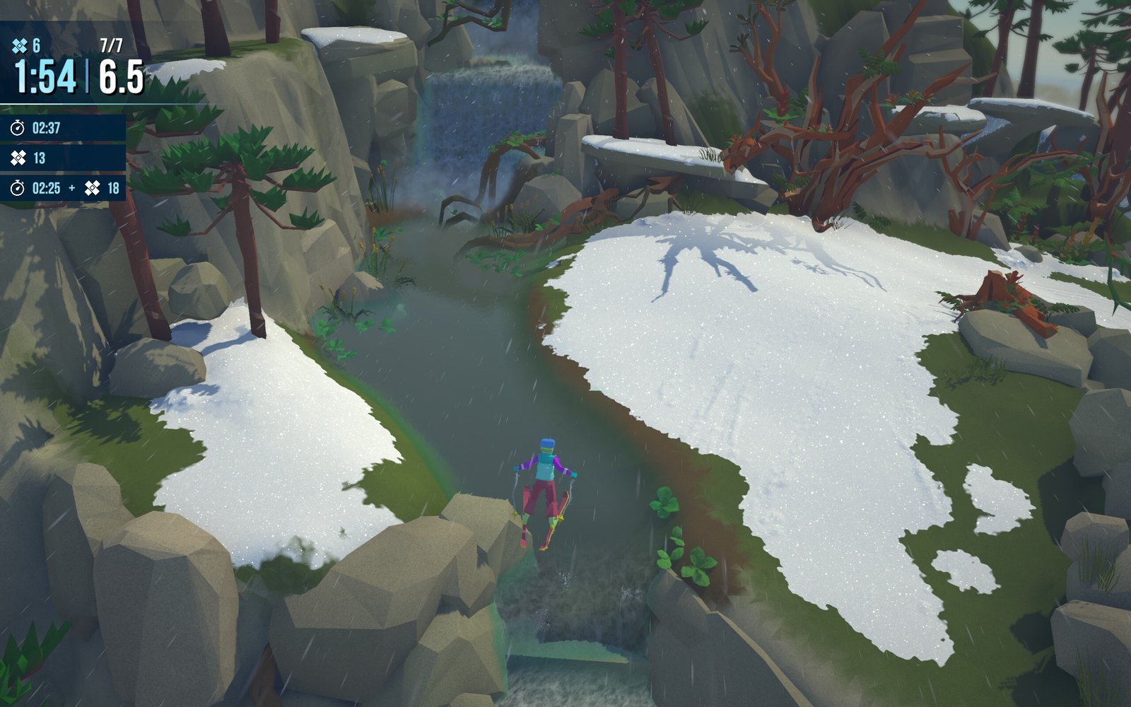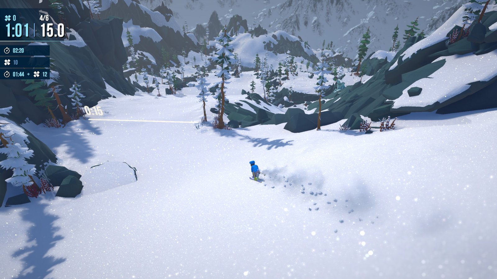 هستهی بازی بر پیمودن مسیرهای برفی از بالا تا پایین استوار است، جایی که بازیکن باید با کنترل دقیق، شیبها، پیچوخمها و موانع طبیعی را پشت سر بگذارد. چالش اصلی پیدا کردن بهترین خط حرکت و زمانبندی مناسب برای چرخشها، پریدنها و مانورهای سریع است. بازی بهگونهای طراحی شده که هر مسیر حتی در نگاه اول ساده، حس پیشرفت مهارت و تسلط بازیکن را منتقل کند. علاوه بر این، قابلیتهای مختلف اسکی و اسنوبورد باعث شده که سبک بازی از حالت تکراری خارج شود و هر تجربه کمی متفاوت باشد.