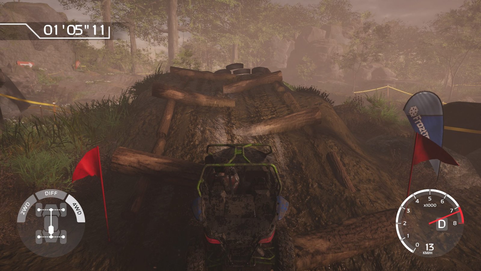 بنابراین فضای بصری در آنجا قرار دارد و از نظر احساسات عنوان خوب عمل می کند. حتی اگر شما در یک دوره مانع مشغول باشید ، تکنیک فقط به همان میزان است که می توانید از آن سرعت بگیرید. در واقع ، وحشتناک ترین رانندگان برای جلوگیری از واژگون شدن و از دست دادن ثانیه های گرانبها ، باید سرعت برخی موانع و موانع را آرام کنند. ضربه زدن به گل میخ یا ایجاد مانع بد هم مجازات است. در پایان ، قدرت گیم پلی حول محور فیزیک آن می چرخد ، مطمئناً از توهین خالی نیست (به تصویر زیر مراجعه کنید) اما به اندازه کافی کالیبره شده اند تا بتواند به طور صحیح معابر دشوار مدار را تحلیل کند و چرخ های آن را مطابق با آن قرار دهد. در کوهنوردی ، اولین تلاش در این دوره ها اغلب صعود خشن را به ذهن متبادر می کند ، جایی که قبل از پیدا کردن مسیر ایده آل خود ، چندین مسیر را امتحان می کنید. بنابراین ما باید روی قفل دیفرانسیل بازی کنیم یا به 4WD سوئیچ کنیم تا از شیب های خاصی عبور کنیم و راه حل را پیدا کنیم ، که غالباً هیجان انگیز است.