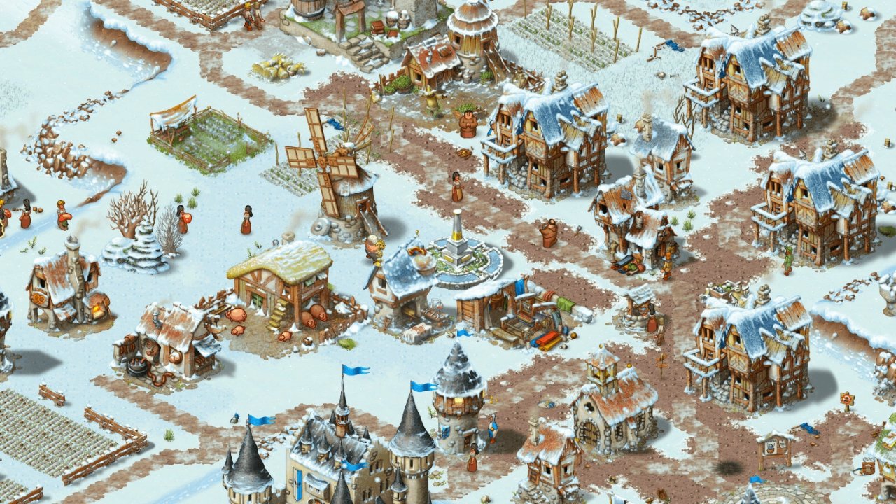 خوشبختانه ، Townsmen در یک منظره ایزومتریک بازی می کند که از فاصله ای بسیار زیبا به نظر می رسد. این بازی همچنین فصلی دارد ، بنابراین شما می توانید نمایی از شهرتان را در طی چهار دوره زمانی مشاهده کنید. این فصل ها نیز مهم هستند و همچنین شایان ذکر است که در ماه های زمستان محصولات زراعی شما برای تهیه آرد و تولید آبجو رشد نمی کند ، بنابراین باید مواردی از این دست را در نظر بگیرید. با این حال اگر به نظرتان می رسد بزرگنمایی کنید ، گرافیک کمی ناچیز به نظر می رسد. ساختمان ها و مردم مانند برچسب های 2D به یک پس زمینه گیر شده اند.